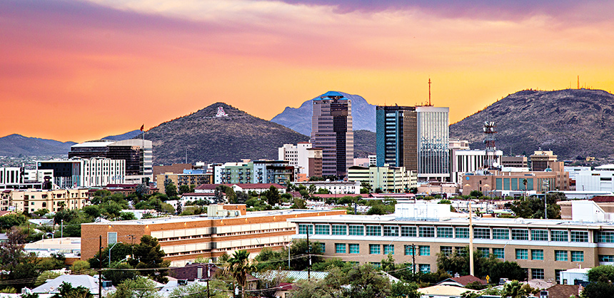 The Tucson skyline, pictured. The Tucson Expo Center is strategically located near Tucson International Airport, and features 155,000 sf of space ready for meetings and special events.