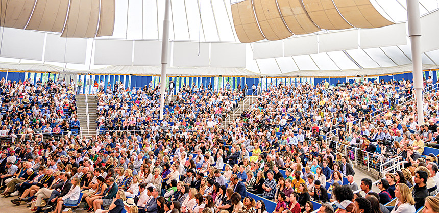 Outdoor venues are perfect when the weather is right. Aspen’s Benedict Music Tent has more than 2,000 seats available. Pictured: Aspen Ideas Festival. C2 Photography / Courtesy of Aspen Meadows Resort