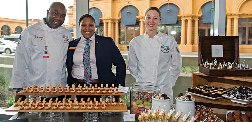 Faubel confirms that it’s advantageous for planners to work with chefs early in the planning process. “The earlier you can work with a chef to say, ‘This is what I’m going to want,’ the longer they have to source the different ingredients and potentially get better pricing on it and extend that to you,” she explains. Stretching those F&B dollars is generally a goal of association planners, and most convention center chefs know ways of accomplishing that. “You can ask them, ‘OK, I need to feed 4,000 people. Give me a couple items that are going to be higher end and have some nice proteins in them, and then find me a couple of items that are going to stretch your dollars more that still allow me to have an elevated feel.’ For example, you can have a pricier cut of meat served thinly sliced on a bed of [e.g., risotto] so they can control the portions.”