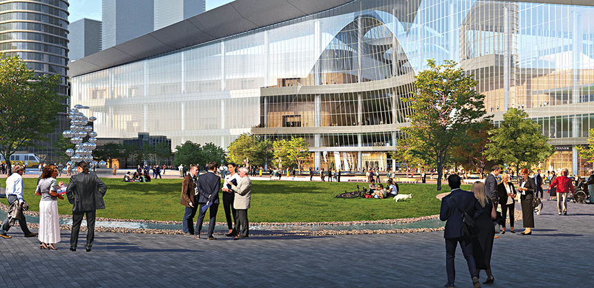 In 2024, Dallas will break ground on a new $2 billion dollar convention center, pictured here in this rendering. It will have 800,000 sf of exhibit space and 400,000 sf of breakout space, including a 100,000 sf ballroom. Courtesy of Visit Dallas