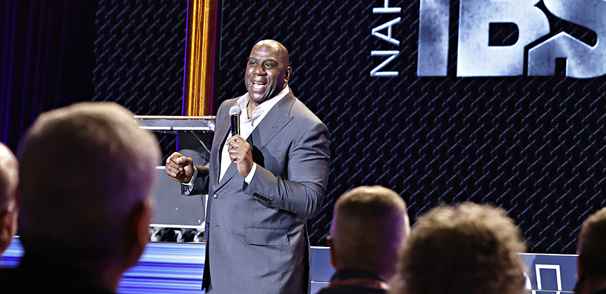 NBA Hall of Fame basketball player Earvin “Magic” Johnson Jr. speaks at the recent National Association of Home Builders (NAHB) International Builders’ Show in Orlando. © Oscar Einzig Photography / NAHB
