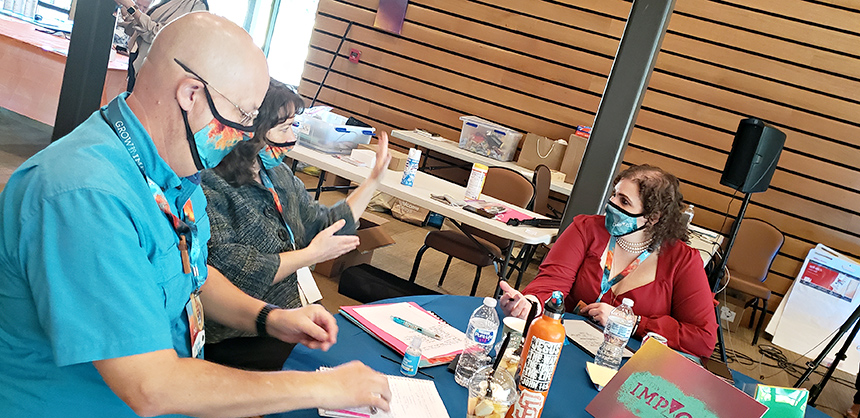 Stephanie Scheller, founder of Grow Disrupt, right, says her organization provides a copy of its Health & Safety Manual to attendees to make sure everyone understands the rules. Courtesy of Stephanie Scheller