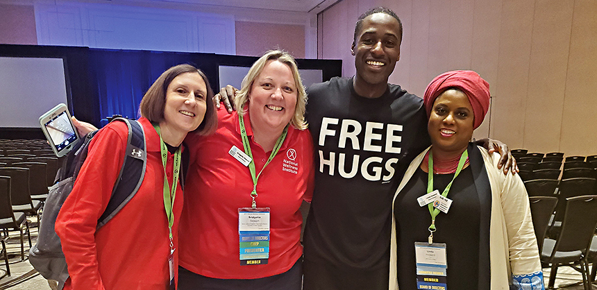 The National Wellness Institute brought in Ken E. Nwadike Jr. — the “Free Hugs Guy” — to a recent event as part of the Institute’s focus on health and wellness for its attendees. Photo courtesy of NWI