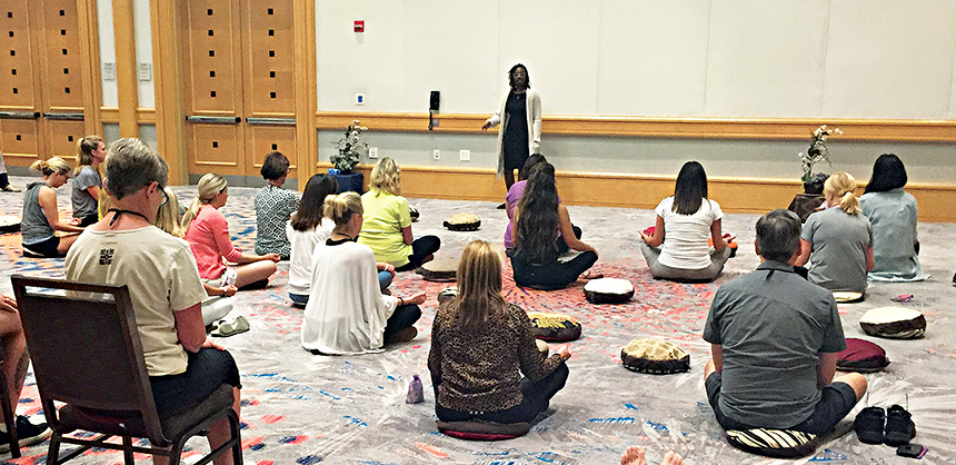 Wellness activities at conferences and events can include meditation, stretching, yoga, tai chi, hiking, morning or afternoon runs, learning healthy recipes, acupressure and more. Courtesy of Kristine Iverson