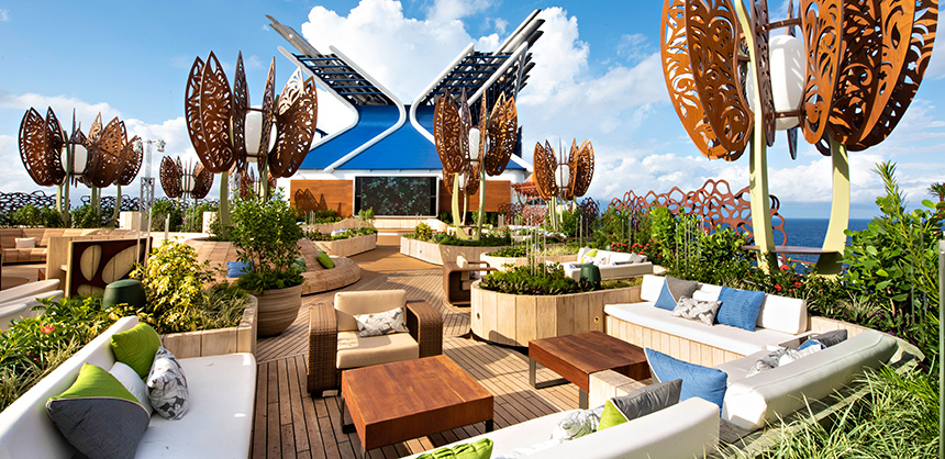 Pictured, the Rooftop Garden on Celebrity Edge. The ship was one of the first to return to the sea after the pandemic delay. Photo by Steve Dunlop