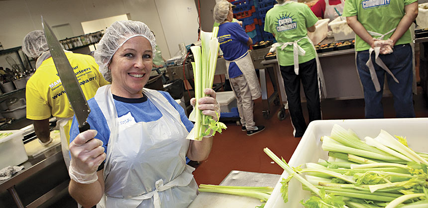 Cesari talked to several nonprofit organizations. “We talked to about six before we found one,” says Cesari. “One organization had certain slots of hours open that didn’t match the meeting agenda. The other organization was booked with volunteer help more than a month in advance. Another could hold only 12 volunteers at one time. I was a little nervous because there were so many things up in the air. As a planner, you like to have details set in stone with a backup plan in place.”