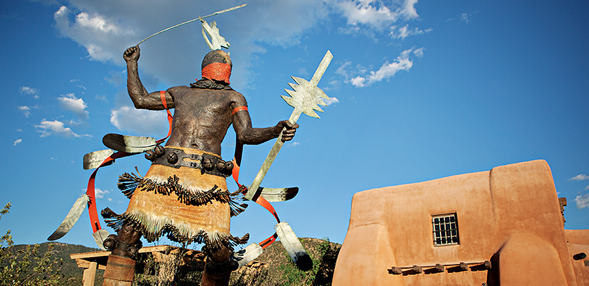 The “Apache Mountain Spirit Dancer” welcomes visitors to the Museum of Indian Arts and Culture in Santa Fe, New Mexico. Photo by Brenda Kelley