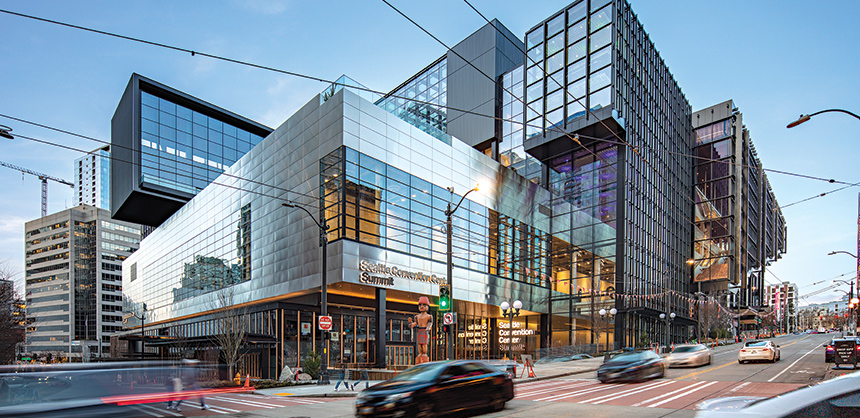 Opened last year, the Summit Building nearly doubled the capacity of the Seattle Convention Center by adding 573,770 sf of event space. Photo by Adam Hunter