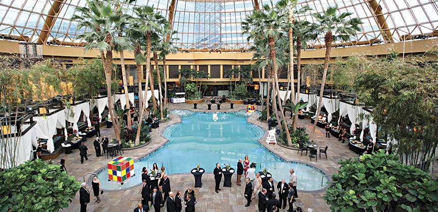 In addition to their physical size, gaming resorts often have some oversized amenities that you wouldn’t find at a more conventional property. The Pool at Harrah’s Resort is one of the largest covered pools on the East Coast and is set under a giant dome. “During the day, it’s a nice, balmy 80 degrees,” says van der Molen. “At night, we bring the temperature down to about 70 degrees and do group receptions or meals there. Around 10 p.m. on certain nights of the week, it turns into a night club environment. It’s rated one of the top 20 nightclubs in the U.S.”