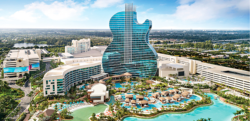 The casino at Seminole Hard Rock Hollywood features 150,000 sf of gaming space with 195 tables, including a variety of games, such as blackjack, mini-baccarat and all of the favorite specialty games. The casino also offers 3,100 of the most popular slots, as well as video poker, video roulette, electronic roulette and electronic craps. A premier destination for players around the world, Seminole Hard Rock Hollywood is home to a 45-table Poker Room with an eight-table, semi-private area. The Poker Room is open 24/7 with first-rate amenities, including more than 50 65-inch high-resolution televisions to catch all the sports action, a private cage with five windows for accessibility and delicious food selections for players on the go. The resort is located within close proximity to South Florida’s major airports: 15 minutes from Fort Lauderdale-Hollywood International Airport (FLL); 45 minutes from Miami International Airport (MIA) and an hour from Palm Beach International Airport (PBI).