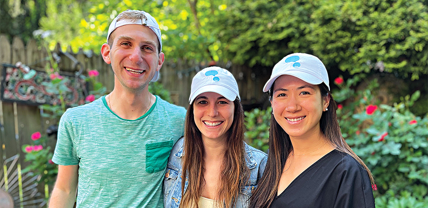 For Lilian Chen (on right, with Spencer Fertig and Julia Elsner), hybrid meetings allow the facilitator to meet the attendees where they are. “It allows for the people who aren’t in the main office city to have the same access to information and involvement,” Chen says. Courtesy of Lilian Chen