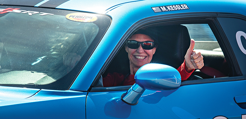 Sports incentives, such as driving an authentic racing car, pictured, and inset, can offer attendees a powerful and unforgettable experience. Photo courtesy of Martin Valenti