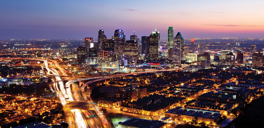 The thriving metropolis of Dallas as seen at dusk from above. Courtesy Photo