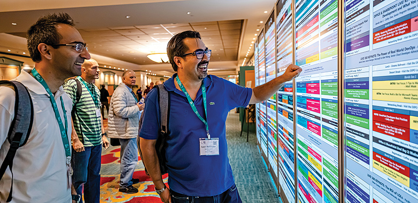 Attendees of the 1105 Media event look at the agenda wall at at Universal Orlando. Lotus Eyes Photography / lotuseyesphotography.com