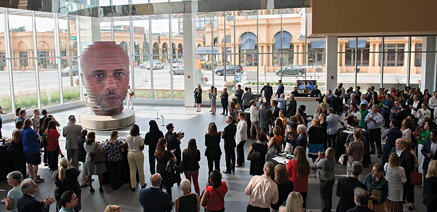 The Greater Columbus (Ohio) Convention Center features a 14-foot high interactive sculpture that has become a popular selfie station. Credit: Ellen Dallager