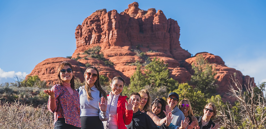 At a corporate wellness retreat in Sedona, AZ, leaders could recharge with mindfulness practices, yoga and more, along with exploring the region’s renowned scenery. Courtesy of Dami Kim / Body and Brain Wellness
