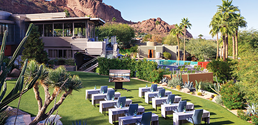 In fact, having a destination that offers such a seamless transition between outdoor and indoor spaces was top of mind for HPN Global’s recent client that was seeking a site for their annual meeting. “The property [Loews Ventana Canyon Resort] was chosen as the client was looking for a high-end resort and one that was close to bike trails for their demos,” says Teresa Bacal, vice president, global accounts for HPN Global. “They were also looking for a hotel that would give them a lot of flexibility in how they used and branded their event space.”