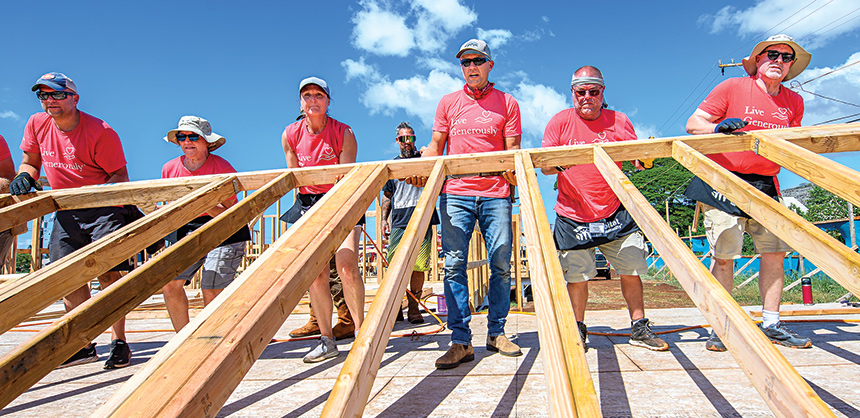 Thrivent has found success with its CSR program with Habitat for Humanity. The rewards of giving back have far outweighed any risks. Pictured: Wall raising in Kauai, HI. Photo by Joe Szurszewski / Courtesy of Tom Edelen
