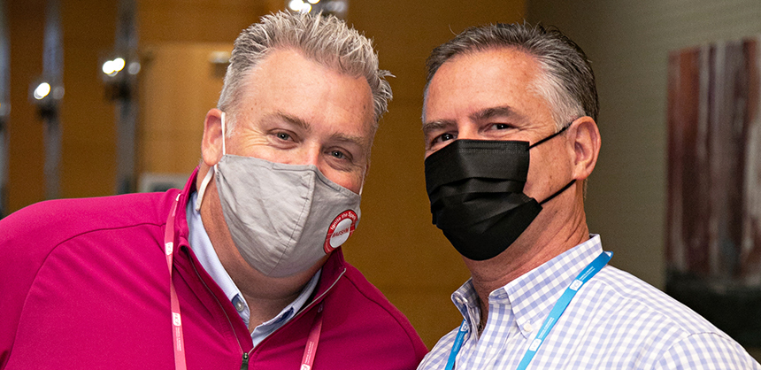 Joe Fijol, left, and Michael Burke, right, wear masks at the recent 2021 FICP Annual Conference as part of the safety protocols. Christopher Barr Photography