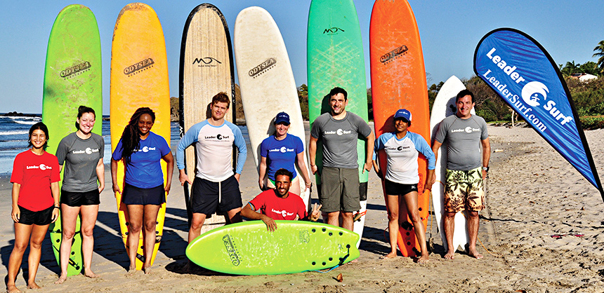 Brian Formato, CEO/founder of LeaderSurf and Groove Management, conducts leadership development programs that bring together executives for a week-long workshop that conducts the training at the beach. Included in the company’s workshops are daily surfing lessons.