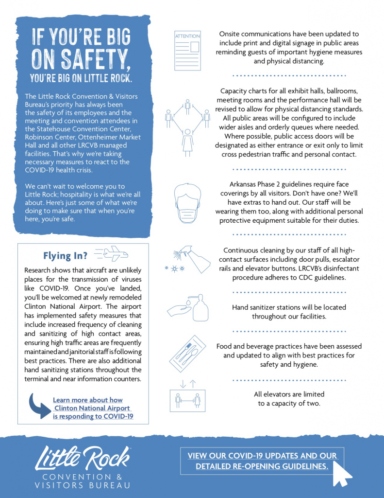 As Little Rock Convention & Visitors Bureau (LRCVB) begins to see some events return to the public facilities it manages and operates, health and safety remain top priority as venues have been sanitized and additional protocols have been implemented.